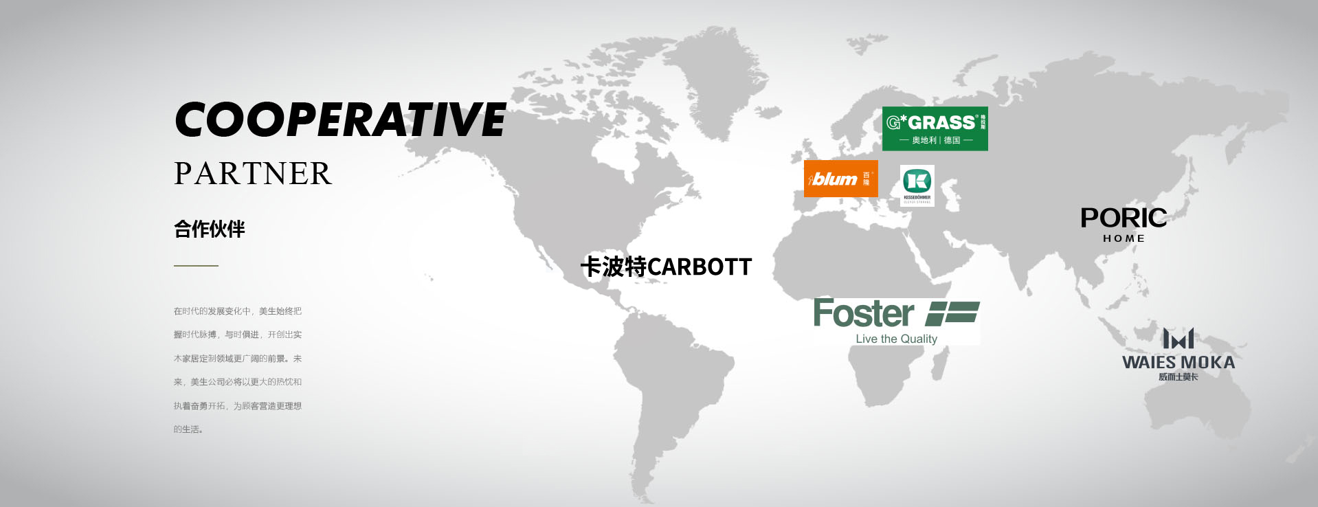 “為更年輕更富有的消費(fèi)者營(yíng)造國(guó)際化水準(zhǔn)的全屋定制生活”,懷著這一偉大夢(mèng)想,美生公司,憑借多年服務(wù)海外廣闊市場(chǎng)的經(jīng)驗(yàn),結(jié)合中國(guó)市場(chǎng)的多樣性發(fā)展,在日新月異的家居定制行業(yè)領(lǐng)域不斷求索,執(zhí)著前行,書(shū)寫(xiě)了讓業(yè)界令人驚嘆的傳奇篇章。在時(shí)代的發(fā)展變化中,美生始終把握時(shí)代脈搏,與時(shí)俱進(jìn),開(kāi)創(chuàng)出家居定制行業(yè)領(lǐng)域更廣闊的前景。未來(lái),美生公司必將以更大的熱忱和執(zhí)著奮勇開(kāi)拓,為顧客營(yíng)造更理想的生活。